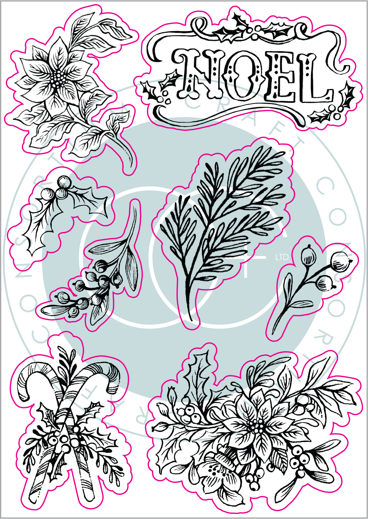 Craft Consortium Clear Stamp Transparenter Stempel Noel Flora