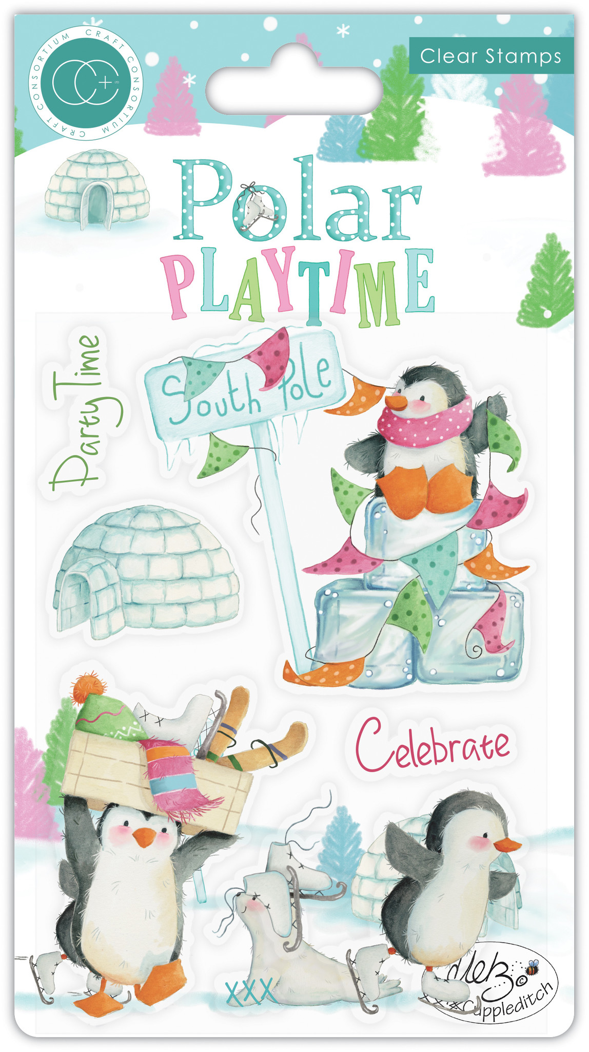 The 'Polar Playtime' collection, created in partnership with world renown illustrator, Helz Cuppleditch. Polar Playtime is based on friendship and follows a fun, whimsical theme of iconic characters set in the South Pole. Perfect for all year round makes. A set of 8 Clear Stamps to coordinate with the 'Polar Playtime' papercraft collection, with printed acetate cover for colour reference.