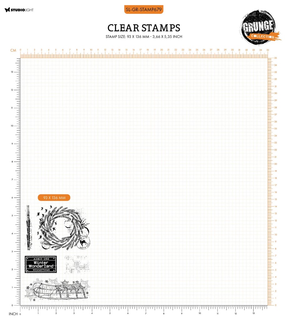 Grunge Collection by Studio Light. Winter wonderland Clear Stamp. 93x136x3mm / 4,33x7,87x0,12 inch. Verschiedene transparente Stempel