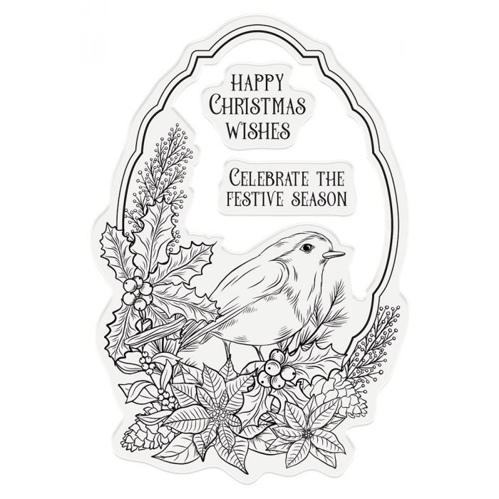 Create stunning centrepieces for your Christmas cards with ease using the Gemini Christmas Frame Stamp & Die sets! Each set features a frame stamp, beautifully illustrated with festive florals, jingle bells, elegant ornaments and more! Use the coordinating die to cut a perfectly sized aperture for your handmade creations, complete with sweet and seasonal sentiments. You can also use the stamps on their own with your favourite colouring medium to add sumptuous festive images to your cards, crafts and gifts! The Happy Christmas Wishes set includes three stamps and one die to create a beautiful frame, with a Christmas robin perched at the bottom and surrounded by beautiful festive foliage. With festive phrases such as ‘Happy Christmas Wishes’ and ‘Celebrate the festive season’ there’s everything you need to create a classic Christmas card! All you need is a die-cutting machine, a die and your chosen card or paper stock. Simply create your plate combination using the helpful Sandwich Guide in the instruction manual and run through your die-cutting machine - it’s that simple! The stamps are made from the highest quality clear acrylic, which means that you can see straight through the stamp to line up the image accurately. Just adhere your chosen stamp to an acrylic block or Rock-a-Block and stamp away! This means that you're guaranteed accurate impressions every time. Why not check out the rest of the Christmas Frame Stamp & Die sets for even more festive fun with papercraft!
