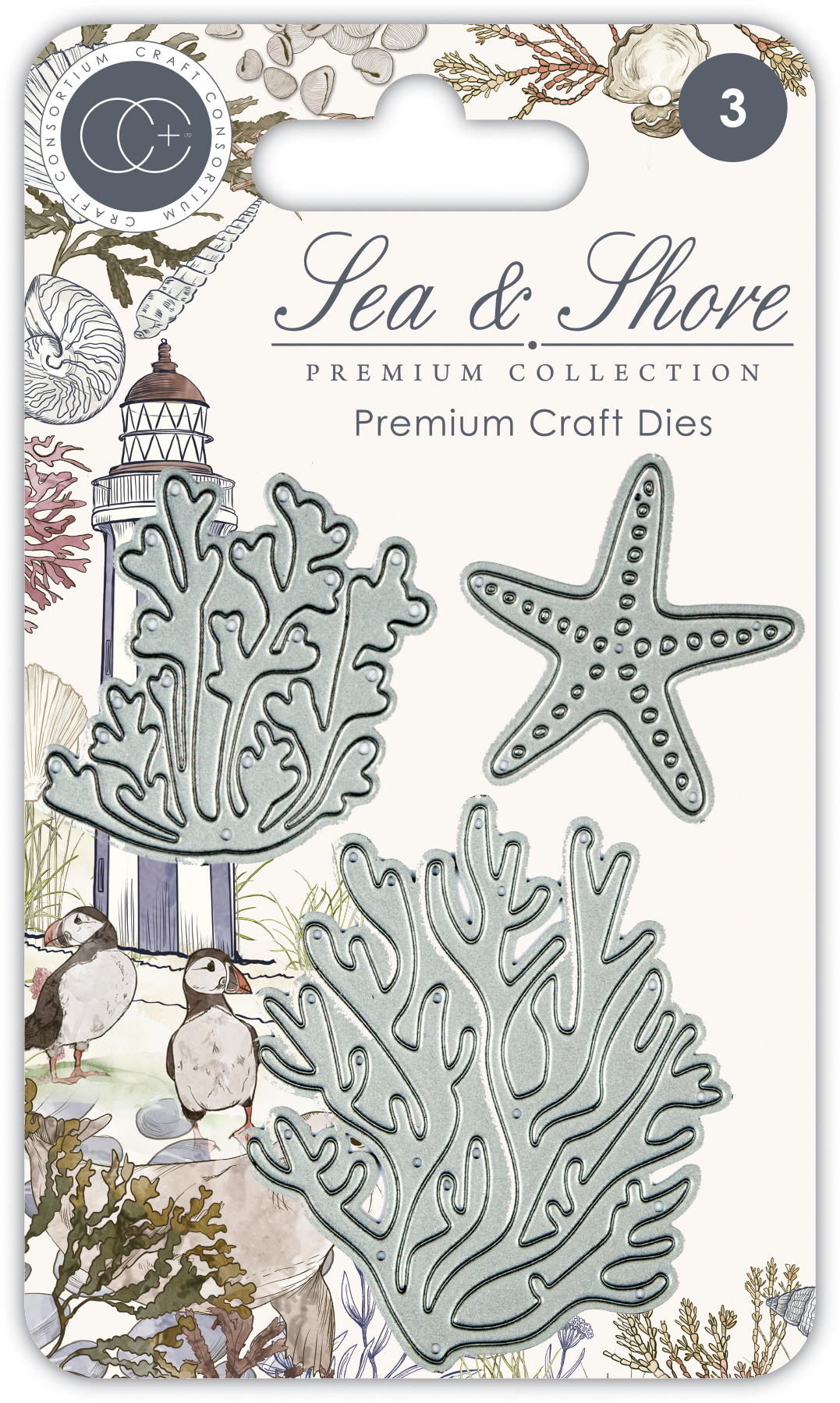 Introducing; 'Sea & Shore'. Sea & Shore; The ninth instalment of our exclusive collaboration with the incredible Hackney & Co. This stunning collection featuring iconic British coastal elements, flora, animals and sea life, takes the Hackney & Co series to a whole new level of exquisite patterns, scenes and wildlife to fall in love with. Celebrating true British nature at its finest. Supported by a series of coordinating embellishments and stamps, this collection is truly one to cherish. Set of 3 premium craft dies in coordinating designs.