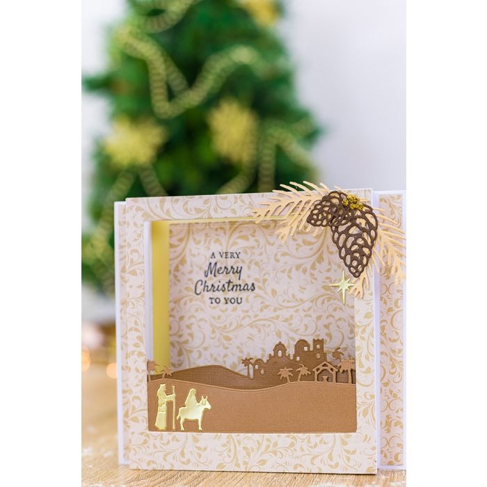 Add enchanting edges to your festive cards and invitations with the Gemini Christmas Double-Sided Layerable Edge'able Dies! Each of the designs has been formulated to cut on the edge of your cards to create an incredible layered look with delicate details. In the Bethlehem Skyline set, you'll receive one die that will help you to cut magical Bethlehem scene into the top, bottom or sides of your cardstock, so it's ideal for adding a touch of traditional Christmas. The concept behind these dies is that one die features a design on each side to help you create a two die-cut pieces with ease. They will help you to save time, whilst giving you that precise and accurate cut that you know and love from our range of dies. Instead of having to roll two individual dies through the machine to create two elements, you will only need to use the one. As these Double-Sided Dies don't have a bottom cutting edge, the shapes cut into the card and remove the top edge, resulting in a delicate design for the top of your cards. Die measures 5.2" x 1.6" (13.2cm x 4.1cm)