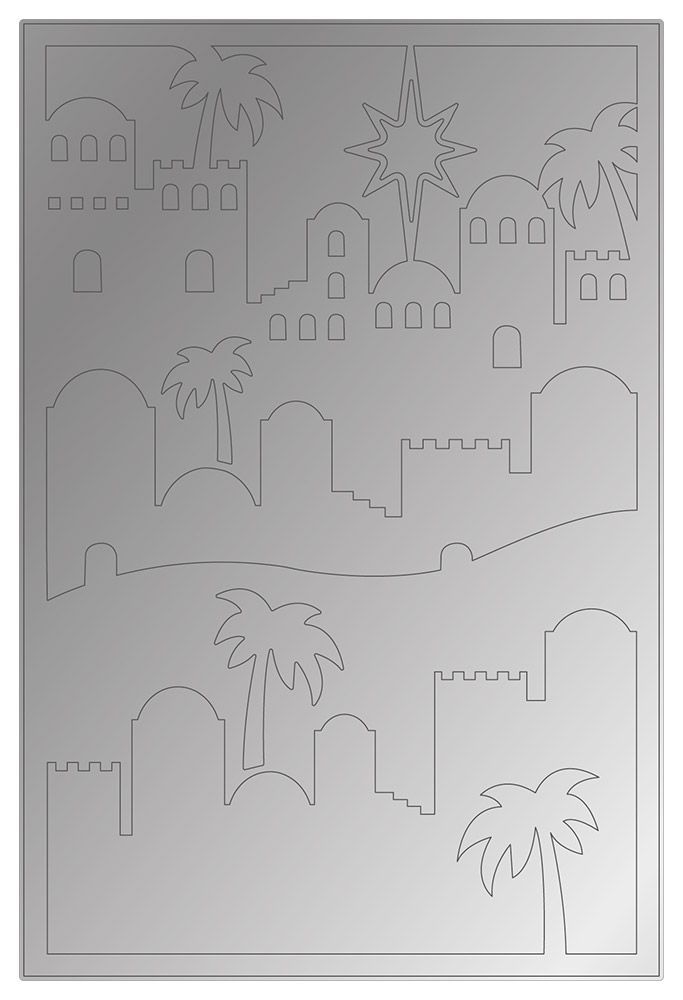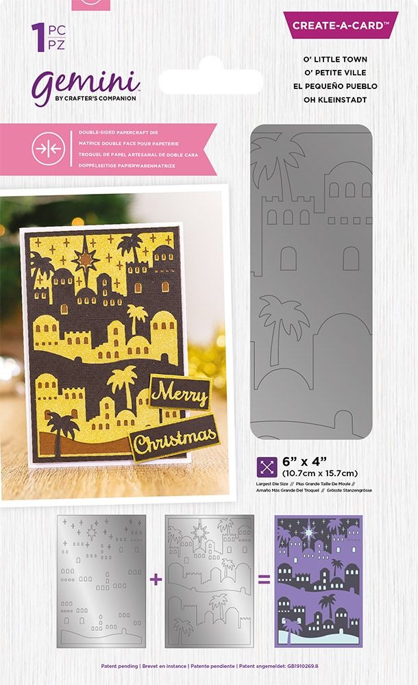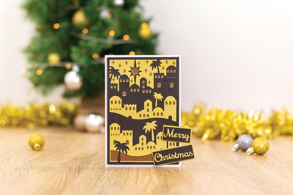 Create statements, apertures and shaker cards with the Christmas Double-Sided Create-a-Card Dies! The O' Little Town design features a layered Bethlehem scene with buildings, palm trees and the Star of Bethlehem, making it the perfect panel to add a touch of Christmas magic to projects. This die will help you to save time, whilst giving you that precise and accurate cut that you know and love from our range of dies. Instead of having to roll two individual dies through the machine to create two layers, you will only need to use the one! Panel measures 6" x 4"