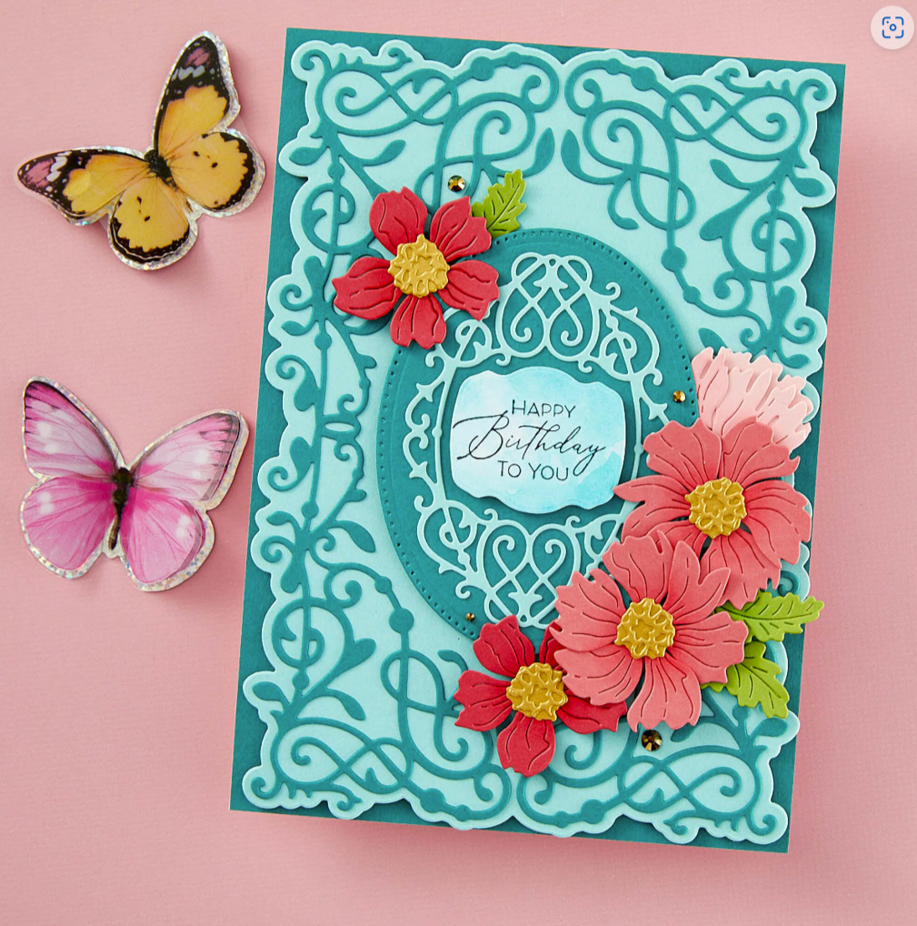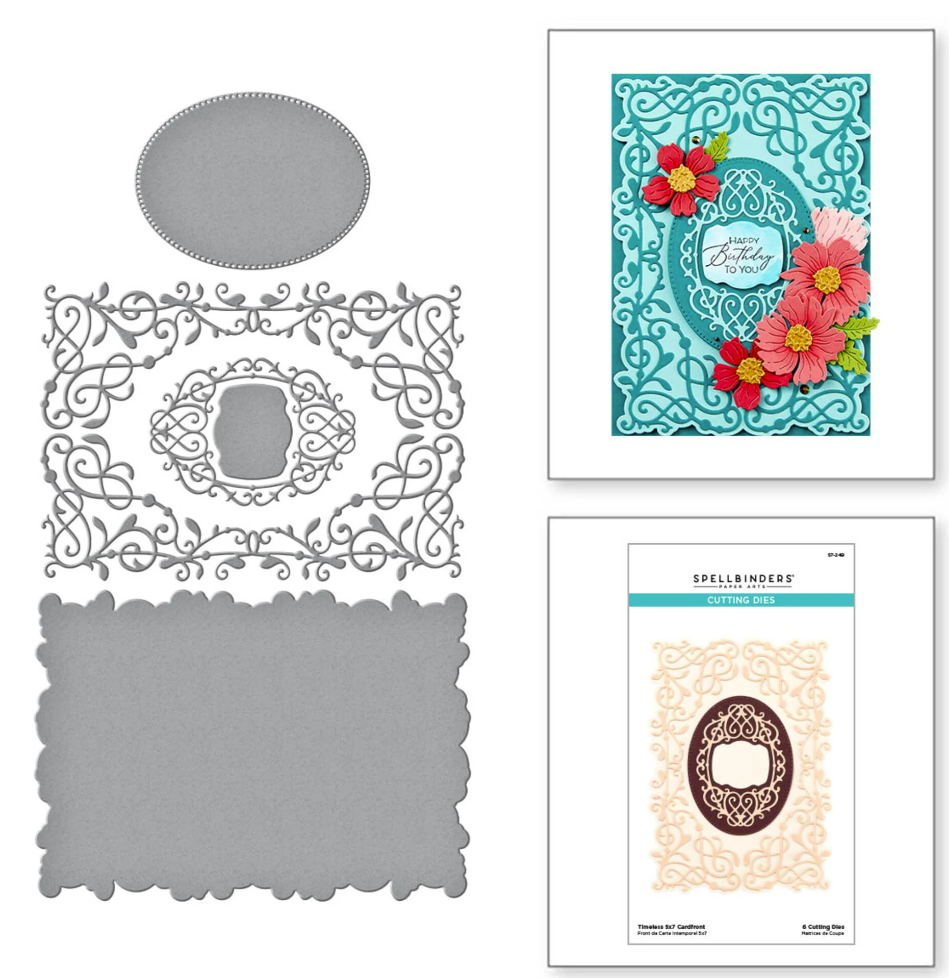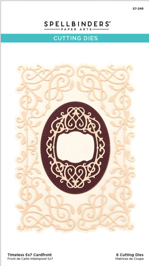 Timeless 5 x 7 Cardfront Etched Dies are part of the Timeless Collection and is a set of six thin metal cutting dies. When nested and cut, this cardfront fills an entire A7 (5 x 7 in.) size card front with a wonderful and delicate lace design. It is guaranteed to be a stunning card to give!
