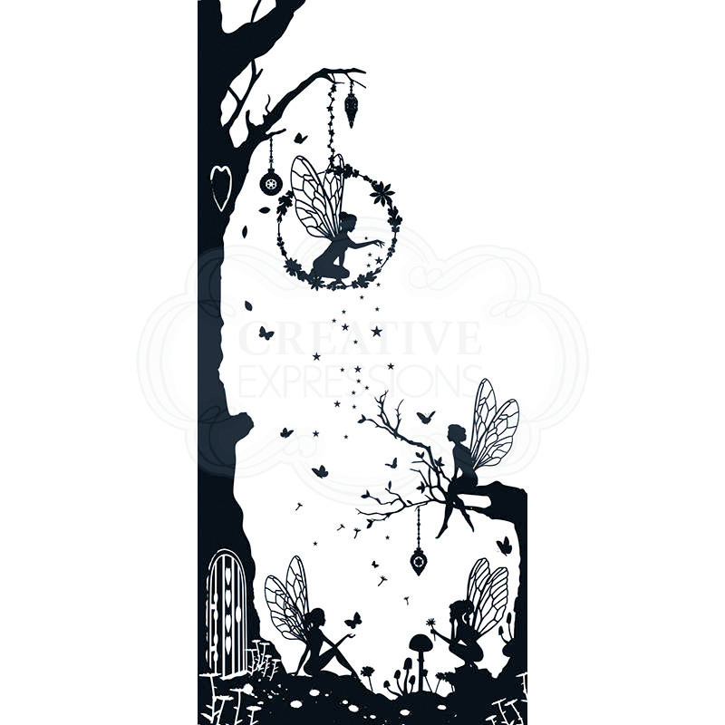 A beautiful fairy scene in this DL size stamp. A wonderful image that will create a picture with just one stamp making creating stunning projects simple, this pre-cut rubber stamp has great detail and will make fantastic, intricate paper craft projects, and so much more. This stamp is mounted on foam ready for you to use mounted to and acrylic block or use on its own. Would look great stamped on glass or acetate. The stamp is suitable for paper, fabric, or any other surface depending on the ink choice. Made in UK.
