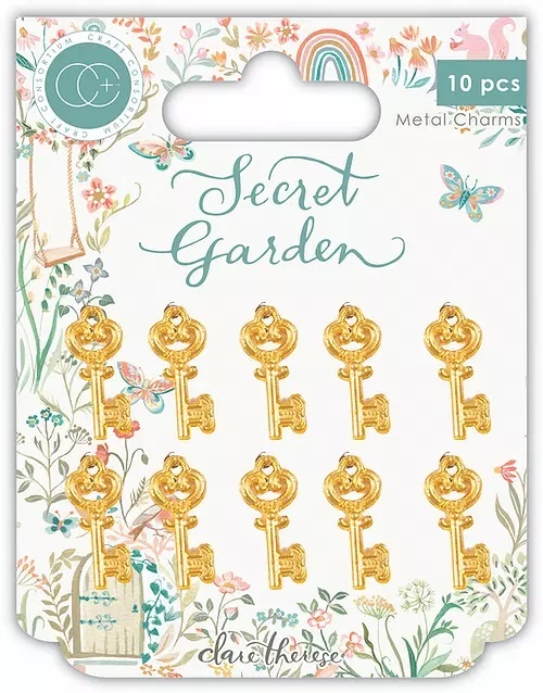 Introducing 'Secret Garden’, the premium papercraft collection, created in partnership with world renown illustrator and designer, Clare Therese Gray. 'Secret Garden' is the fifth instalment in our licensed partnership, and features, hand illustrated designs, inspired by the English Countryside. This stunning collection, of iconic folk art style illustrations, topiary and estate gardens in eye catching designs and soft tones just takes you to a magical place of florals, wildlife, whimsical rainsbows, peace and tranquility, with hidden golden keys. Set of 10 Gold metal key charms.