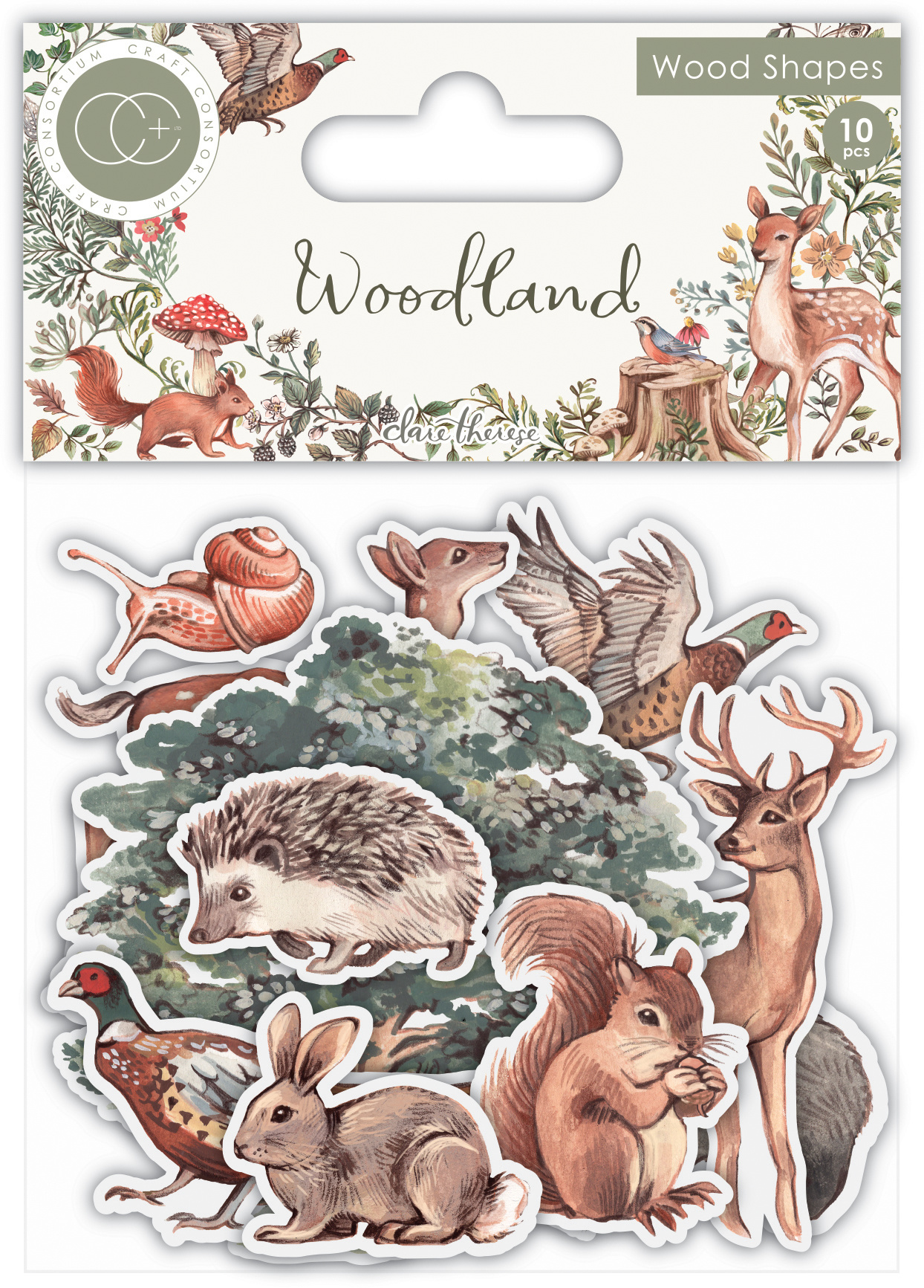 Craft Consortium are proud to bring you: 'Woodland’. A premium, hand illustrated collection, created in partnership with world renown illustrator and designer, Clare Therese Gray. A set of 10 laser cut, printed, wooden character shapes in coordinating design to match the 'Woodland' collection. 10 ausgestanzte Holzteile