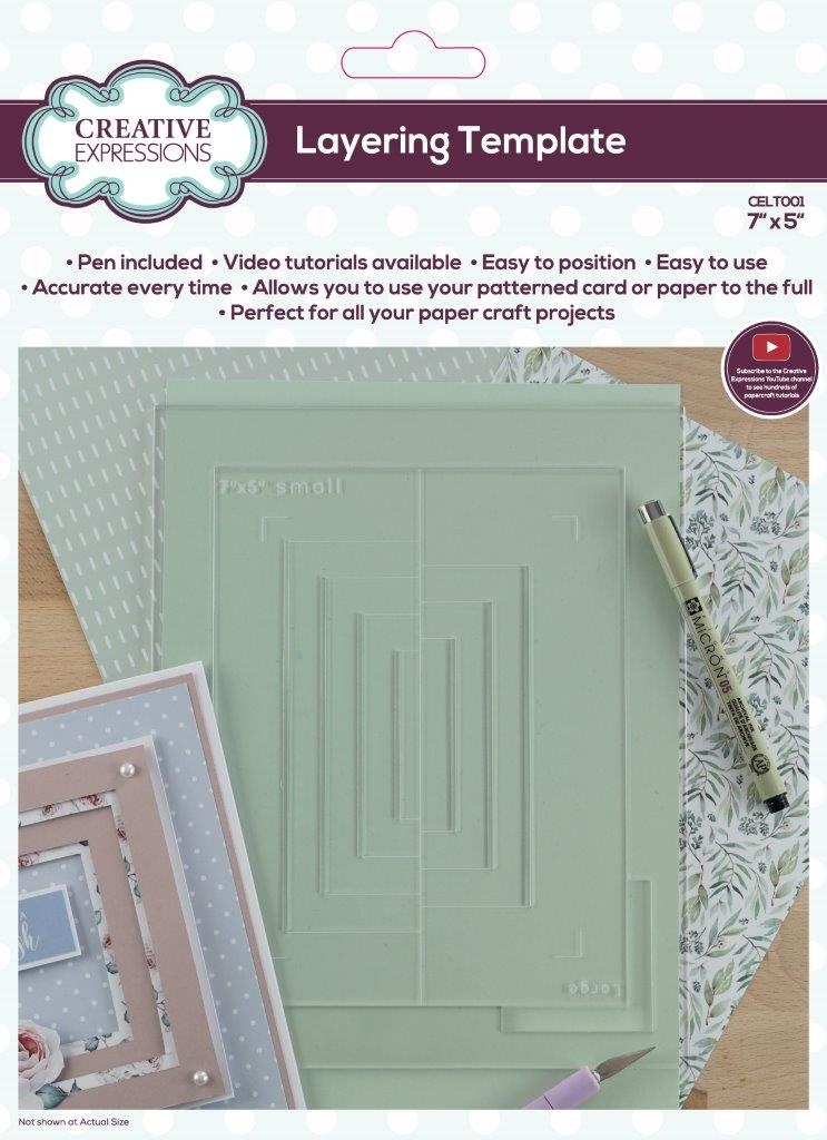 Layering Template 7 in x 5 in - The layering template is simply positioned over card or paper, draw lines with the pen Sakura Micron Pen that is included in the kit, remove the template, and cut the lines using a craft knife. A great tool for creating perfect frames, mats and layers. Not only can you create a variety of frame sizes you can also make the frames of different widths. Use for card making, scrapbooking and other paper craft projects. Helps to get the most out of patterned paper, easy to get perfect results every time. Full instructions included in the pack.