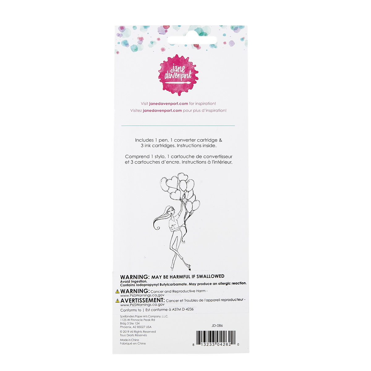 Create beautiful artwork or write sentiments with Janes fountain pens! Fill with pre-filled ink cartridges that come with the pen or use the ink converter to fill with Inkredible Ink or any fountain pen friendly ink! Includes pen, three cartridges (blue, green and red ink), plus ink converter.