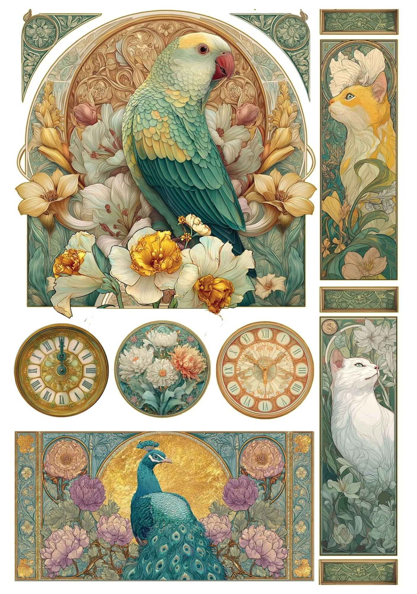 Rice Paper Art Set. A mixed of rice paper sheet in A4 size. Unique design and quality. Ideal for art journaling, collage, decoupage, mixed media, and more. Perfect for ArtSET background of your project. Size: A4 / 21x29,7cm. Sold in pack of 4 single-sided printed papers. 4 design. High quality rice paper 28gsm. Soft-touch. Acid and lignin free.